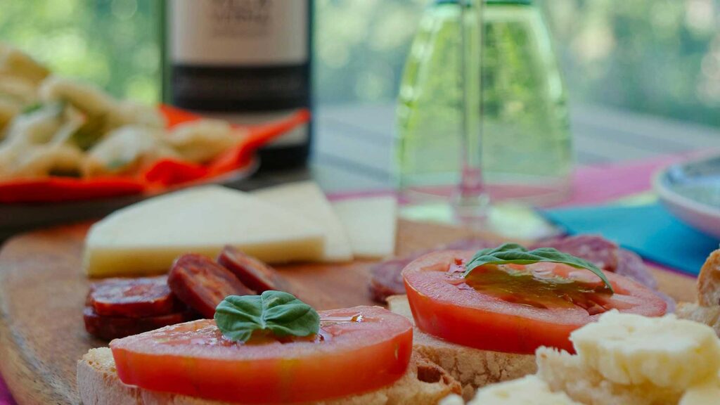 Flavors and colors of Abruzzo. A typical aperitif, rich and delicious, prepared "at home" by Eva with seasonal products of the farm, collected daily in the garden and freshly prepared.